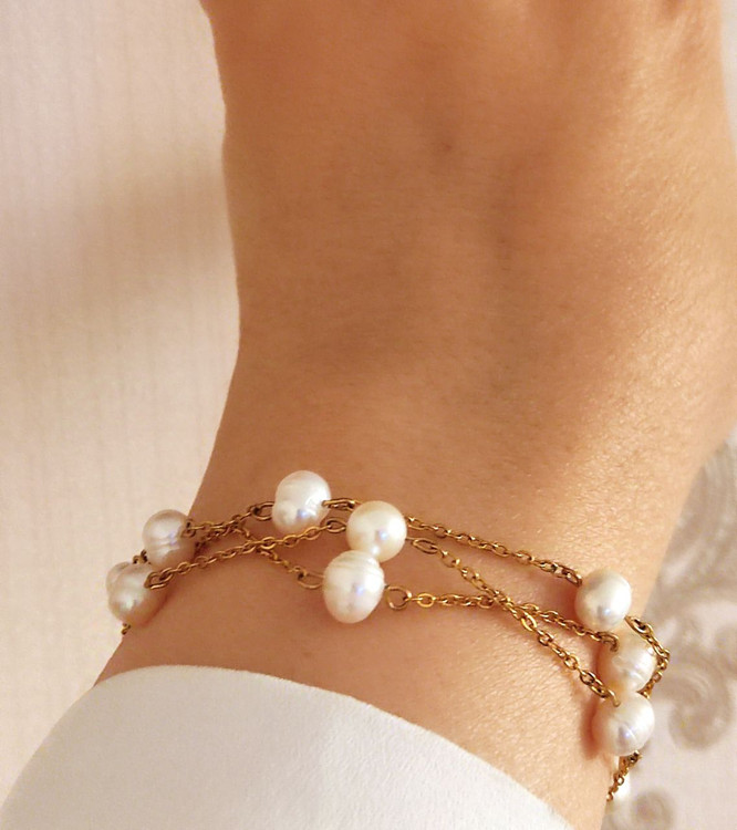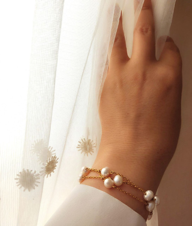 ست گردنبند و دستبند و گوشواره مروارید پرورشی اصل سه ردیفه برند شاران