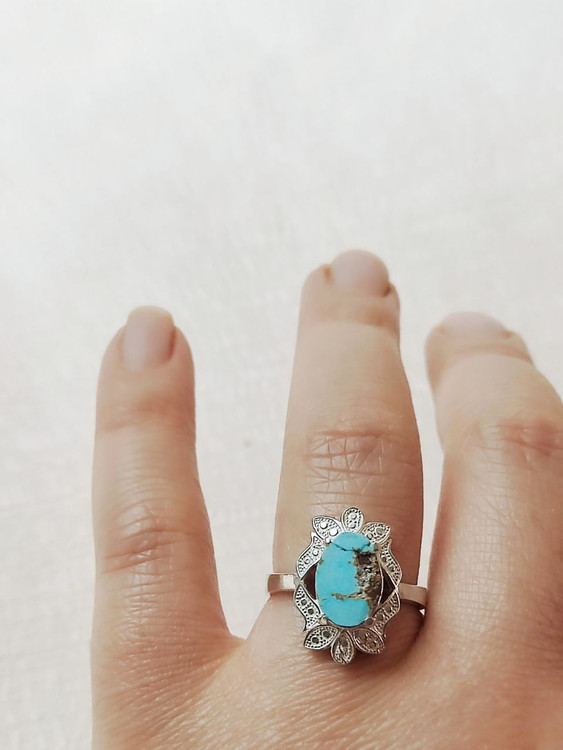 انگشتر نقره زنانه با نگین فیروزه نیشابور