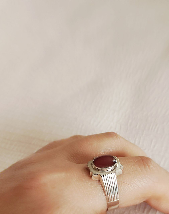 انگشتر نقره مردانه با نگین عقیق سرخ خراسانی برند شاران