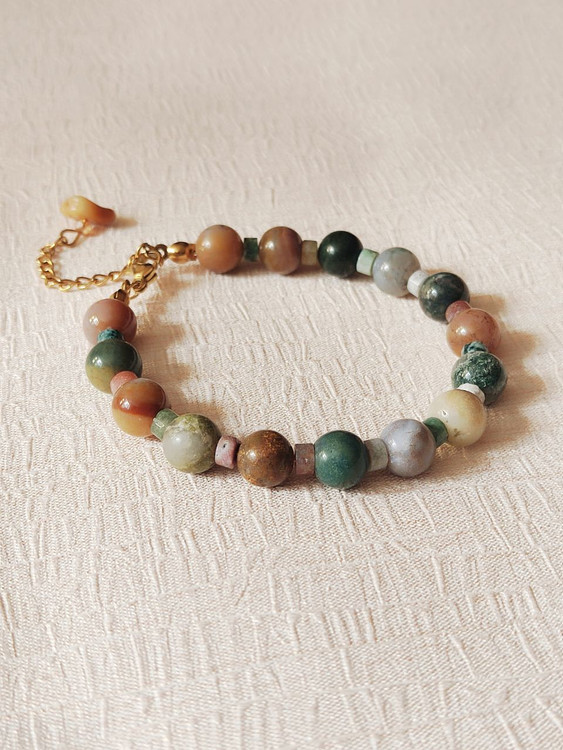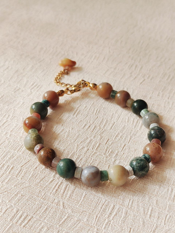 دستبند زنانه عقیق خزه ای اصل برند شاران