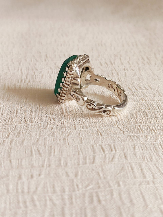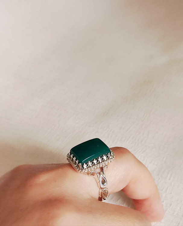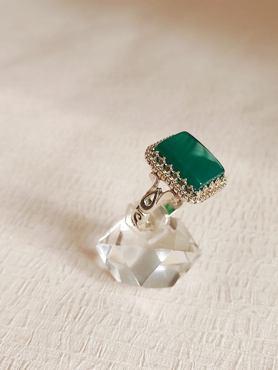 انگشتر نقره مردانه با نگین عقیق سبز
