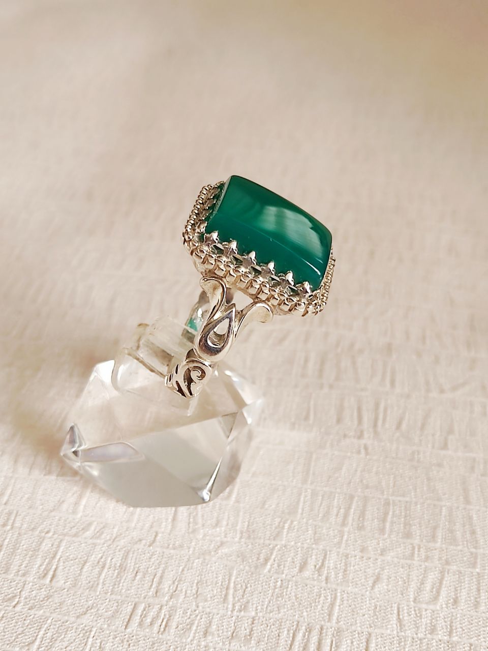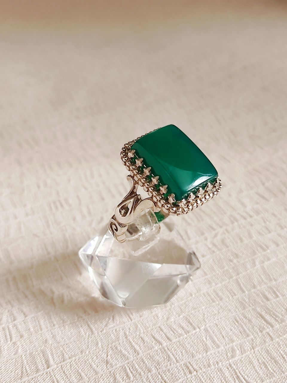 انگشتر نقره مردانه با نگین عقیق سبز