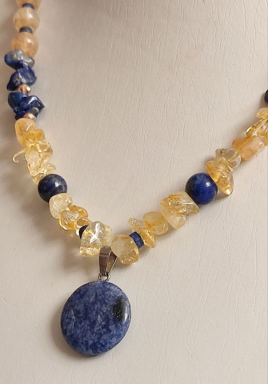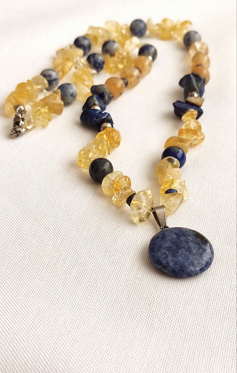 گردنبند سنگ لاجورد و سیترین اصل شاران
