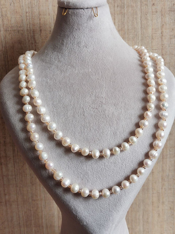 گردنبند مروارید پرورشی به صورت دو ردیفه با قفل استیل رنگ ثابت